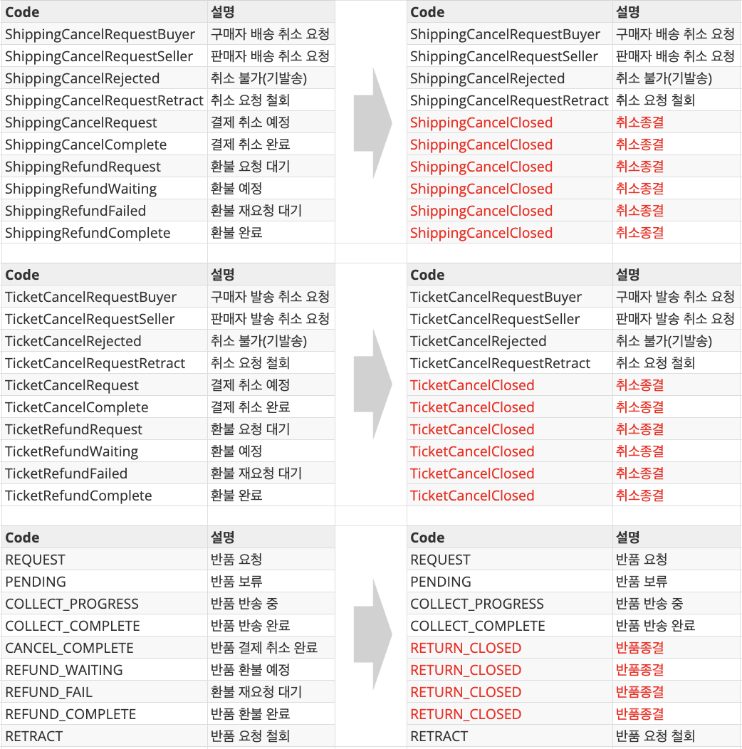 취소/반품의 클레임상태(ClaimItemStatus)가 아래와 같이 변경됩니다.